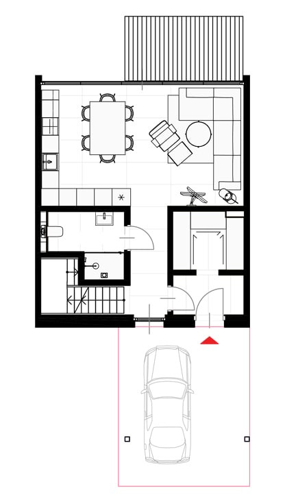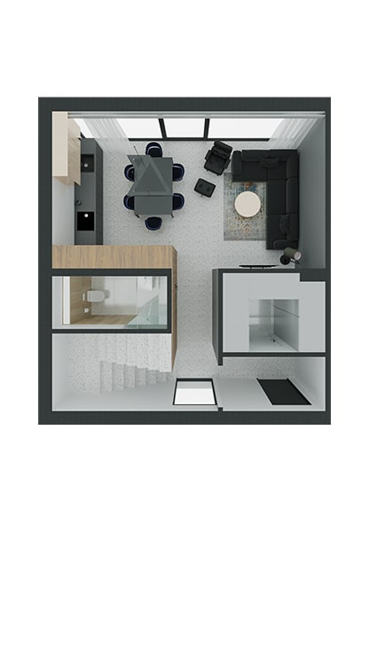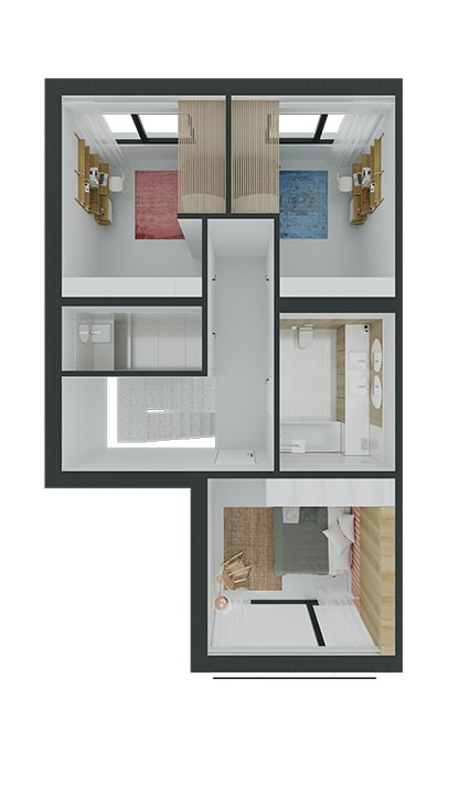 Dom składa się z 4 pomieszczeń na parterze i 5 pomieszczeń na piętrze o łącznej powierzchni 109,31m2. Dom wykończony jest do stanu deweloperskiego. W standardzie oprócz pełnej instalacji elektrycznej zawiera także instalacje pod fotowoltaikę oraz pod system inteligentnego domu. W całym domu zastosowane jest ogrzewanie podłogowe oraz ogrzewanie wody za pomocą pompy ciepła. W celu zapewnienia prawidłowej wentylacji pomieszczeń w całym budynku zainstalowana została rekuperacja. Dla osób chcących zwiększyć standard apartamentu, umożliwiamy wybranie dodatkowych opcji tj. klimatyzacja, trawa z rolki, rolety zewnętrzne i inne znajdujące się w konfiguratorze.